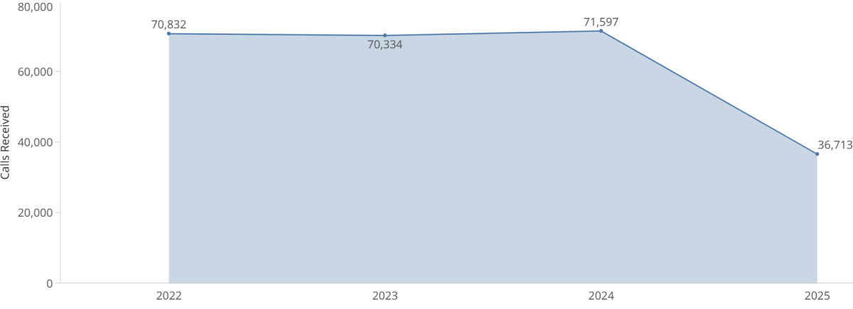 Crisis Calls Received by Month Jan ’22 – Jun ’25
