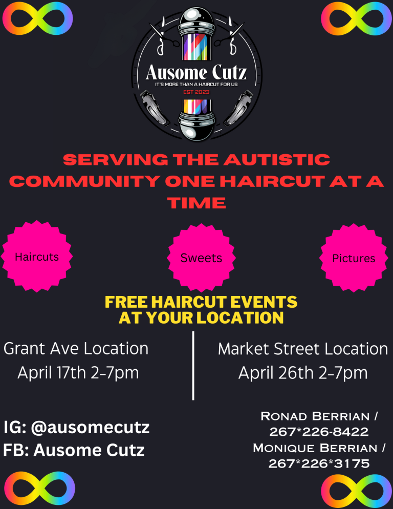 Ausome Cutz will be providing free haircuts to the Autistic community at The Center for Autism and behavioral health screenings will be available.