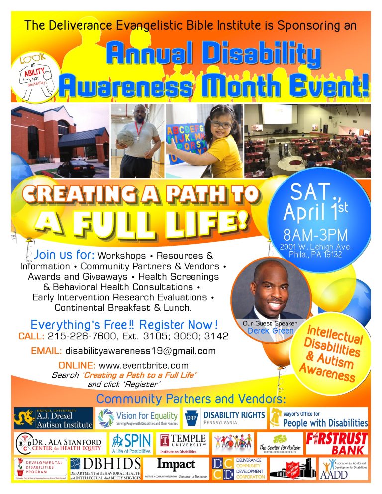 | FreeOn Saturday, April 1, 2023, we are hosting a FREE Annual Disability Awareness Month Event. At this event, we will provide workshops, resources, materials and information to support families and people who work with People who have Intellectual Disabilities and Autism. Our purpose for this event is to is to Create a Path to a Full Life. We have a host of Community Partners that will join is to fulfill this goal. Please see the flyer attached.