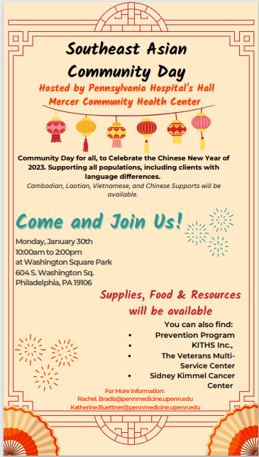 Community Day for all to celebrate the Chinese New Year of 2023. Supporting all populations, including clients with language differences. Cambodian, Laotian, Vietnamese, and Chinese Supports will be available.