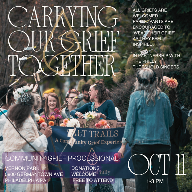 Join Salt Trails, a Philadelphia collective that has been holding community grief rituals since 2021, for its 5h annual community processional, Carrying Our Grief Together.