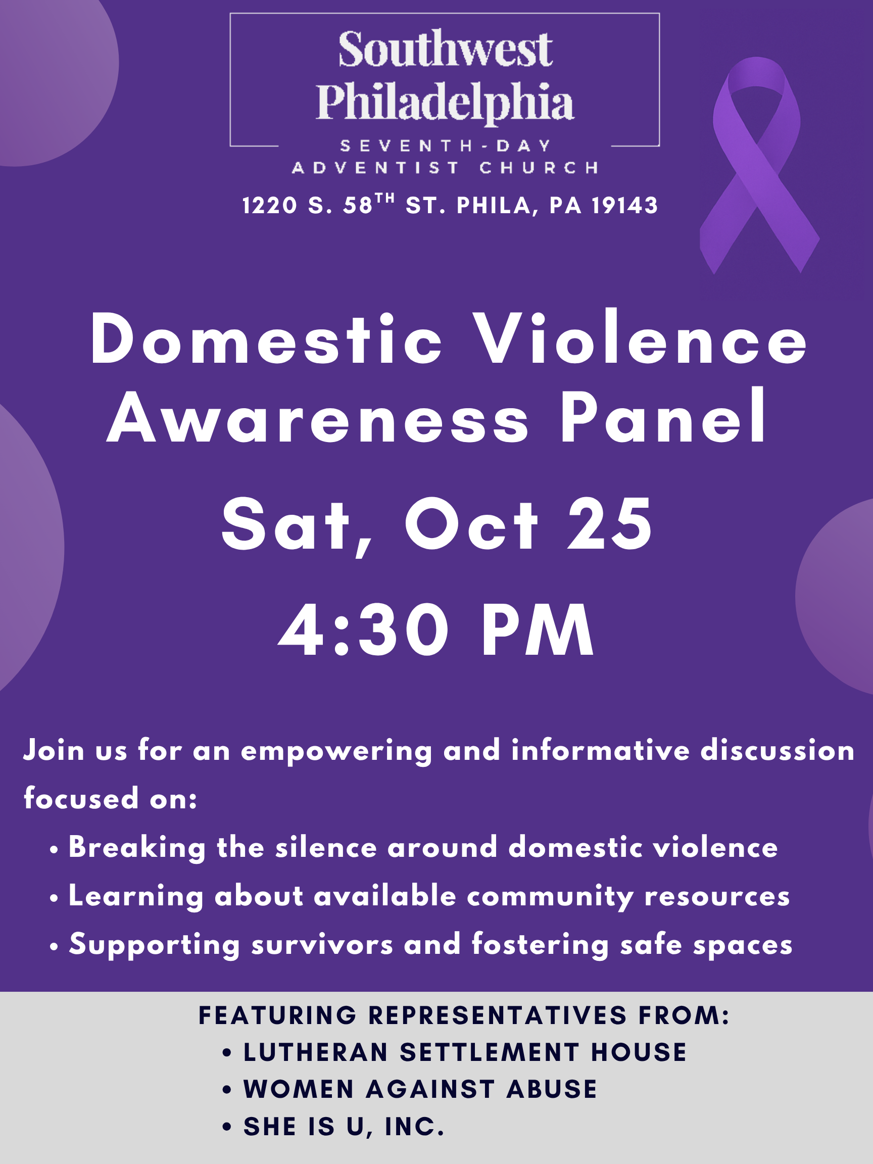 ๐ Location: Southwest Phila SDA Church;1220 S. 58th St., Philadelphia, PA 19143