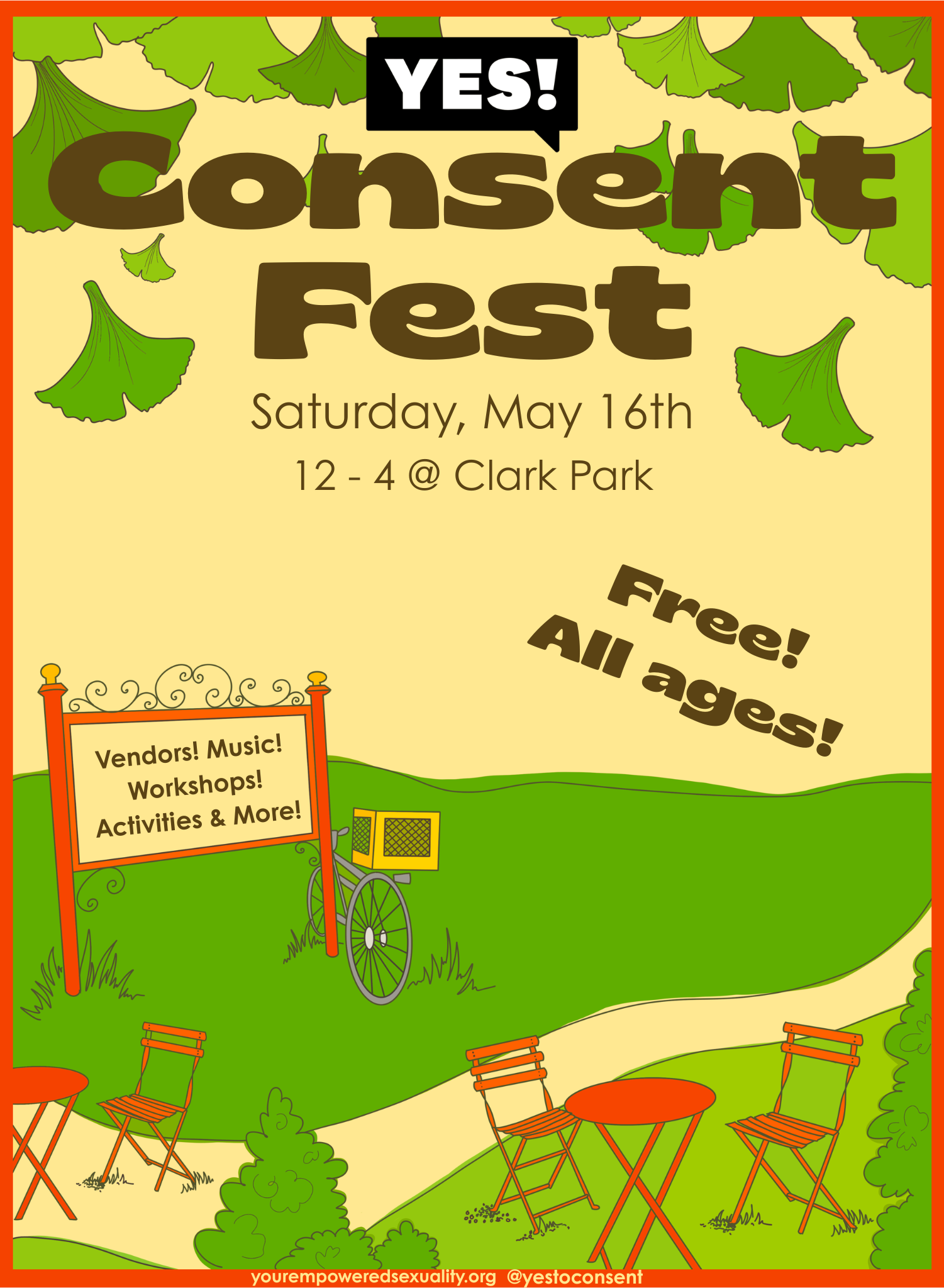 Clark Park , United StatesConsentFest is an outdoors, all-ages celebration of consent in all its forms, featuring organizations doing consent work or work that intersects with consent and bodily autonomy, vendors, performances, workshops, and other joyful things! The goal is to dream with our community about what consent culture can look like. There will be activities for kids and grown-ups, vendors, resources, music, drag, dogs to pet (with consent!), and more! At 12:30pm we will have a performance of children's music from Ants on a Log. At 3:30pm we will have a family friendly [...]