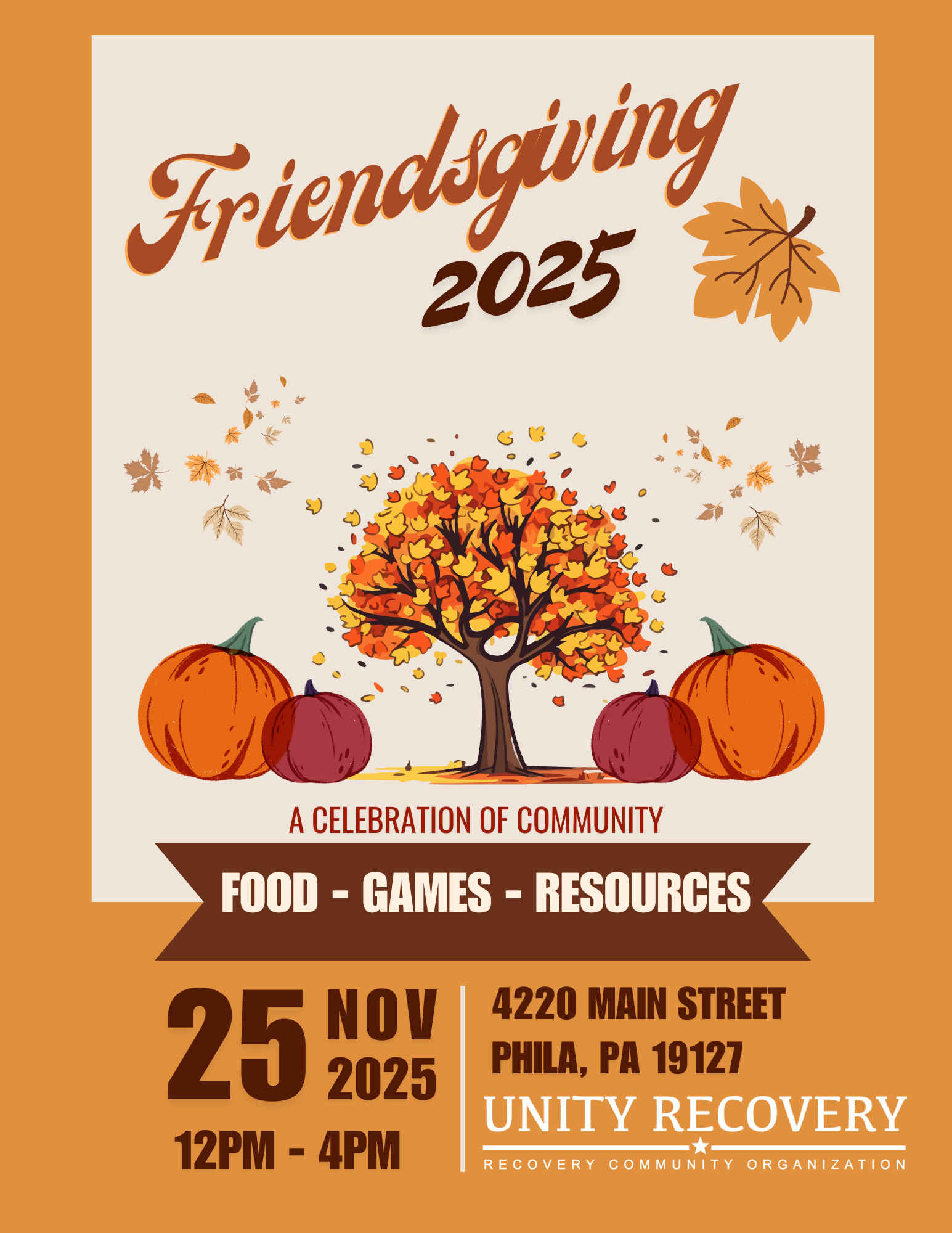 We’re coming together as a community to share a meal, connect with one another, and give thanks. After lunch, guests are welcome to join us for a Coffee & Resource Hour where you can meet local organizations, learn about available community support, and grab helpful resources to take home. And that’s not all — we’ll also have: Raffles for Unity merch and prizes A RecoveryVerse demo (come explore the virtual recovery community!) Games and activities for everyone to enjoy